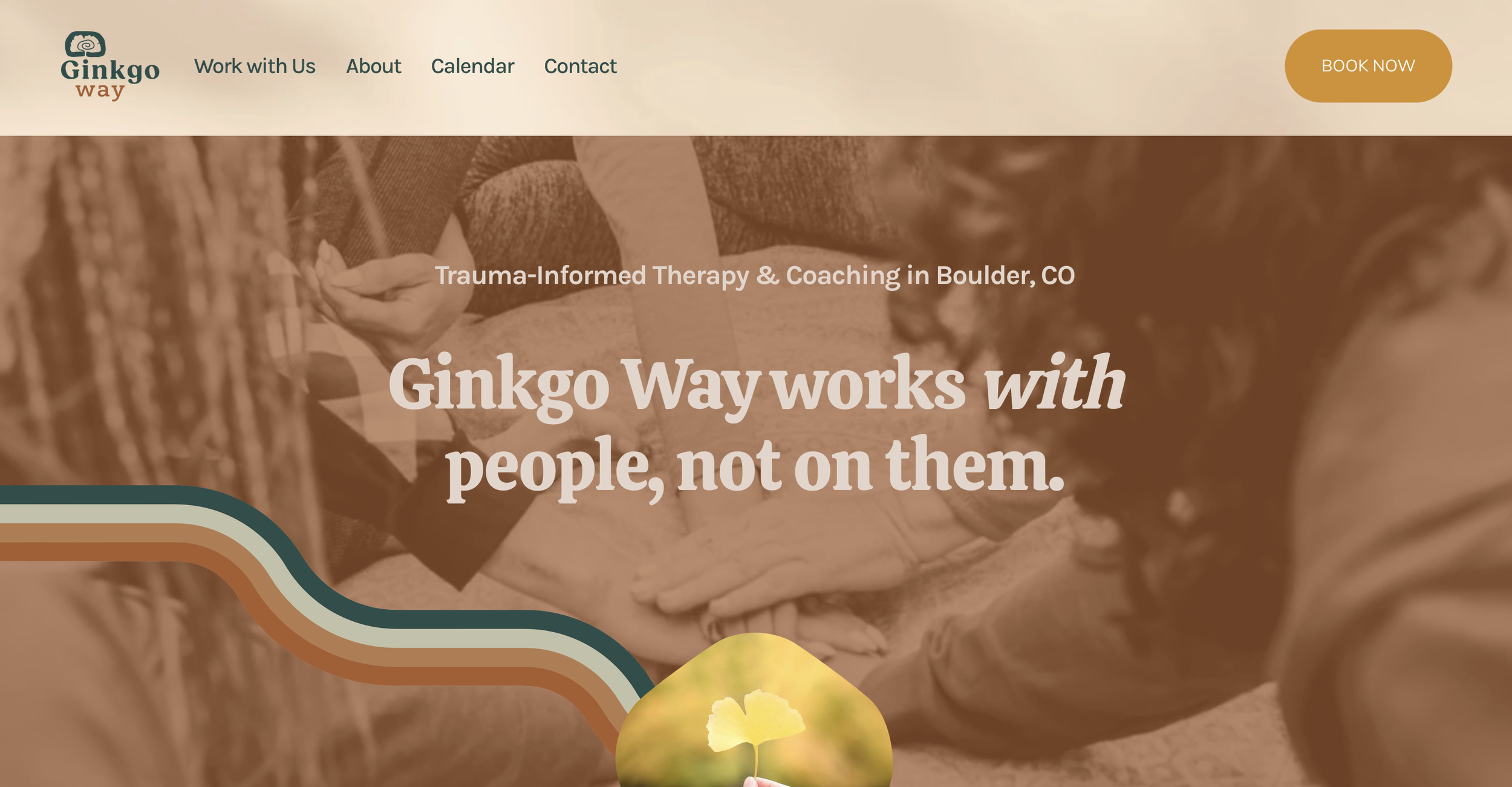 A grounded, reflective site for a nature-inspired group therapy practice.